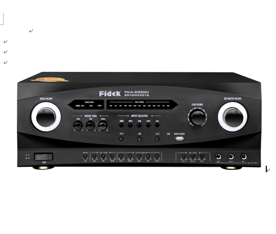 產(chǎn)品特點: FKA-2350U為專業(yè)用途使用型號,造型精致簡約,設(shè)計新穎獨具色彩 ;采用雙混響前級設(shè)計,卡拉OK效果突出明顯,是量版KTV娛樂工程的絕佳選擇 ;獨具的PRE. REC信號輸出.四路音頻轉(zhuǎn)換 ;RETUR.SEND功能,方便調(diào)控音質(zhì)變化 ;強制冷風(fēng)散熱,加強本機滿足長時間工作需要 ;...